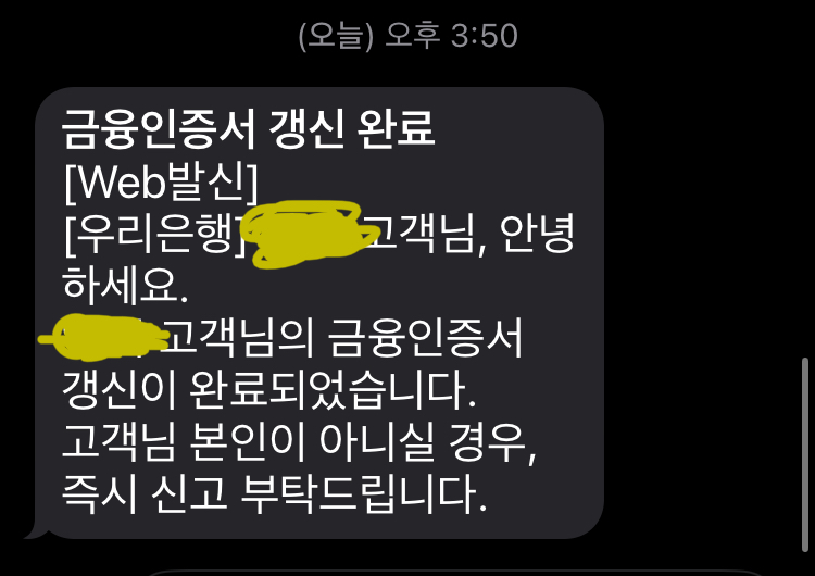 금융 인증서 탭에서 인증서 갱신을 눌러주세요!!!