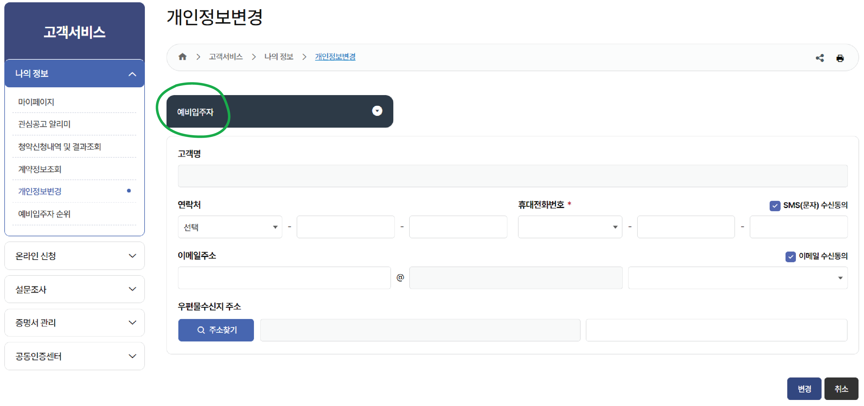 (LH 웹사이트나 LH 모바일 앱에서 변경 가능)