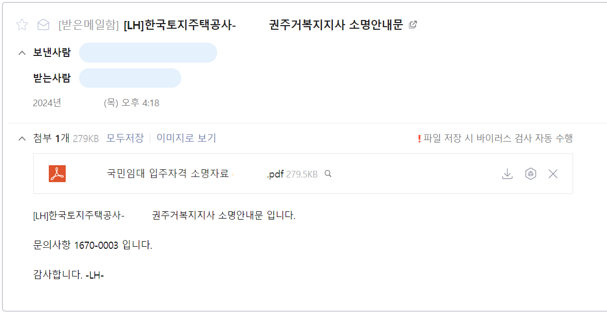 LH 담당자에게 이메일로 보냈기도 했고