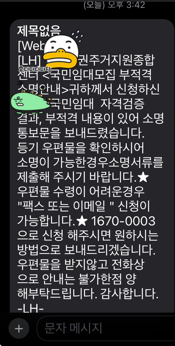 부적격 소명 안내 문자 - 자격 검증 철저히 하는 LH 칭찬해!!!