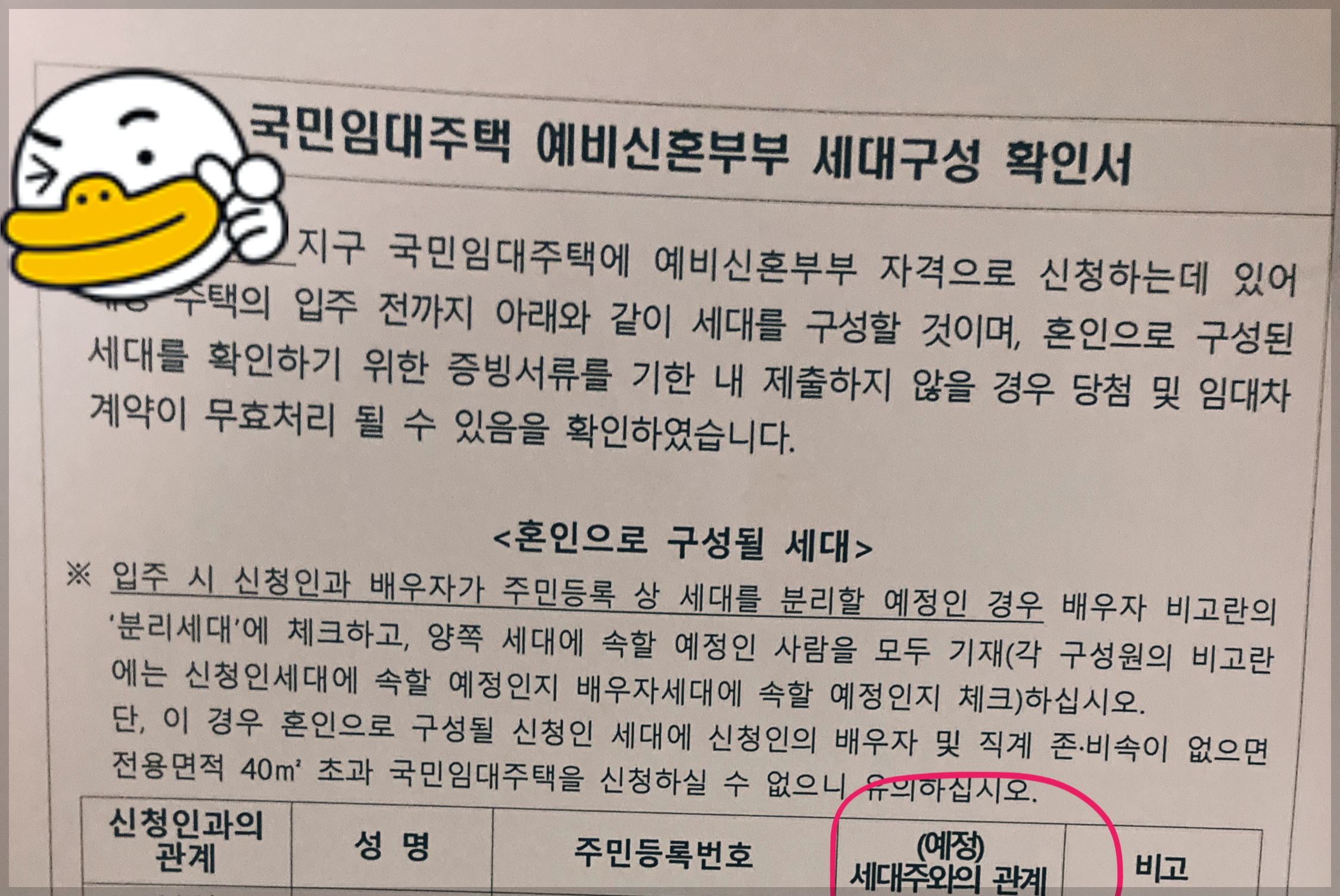 제출 서류중 하나였던 예비 신혼부부 세대 구성 확인서..!