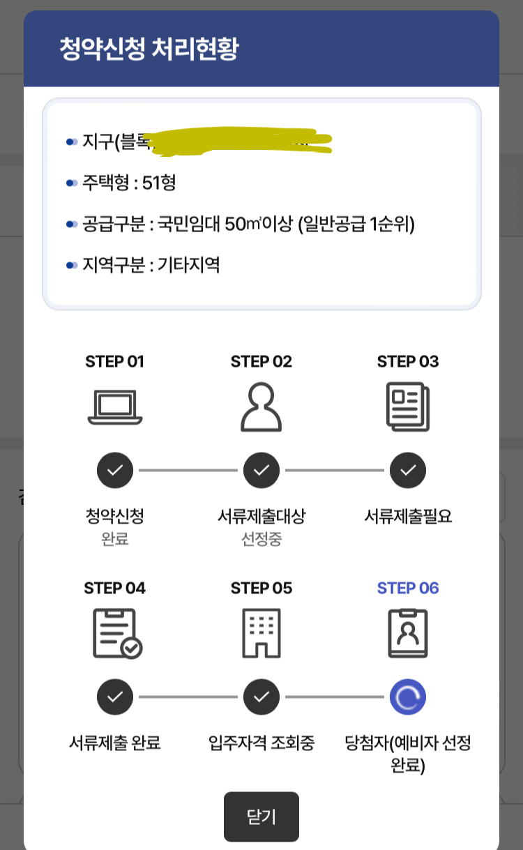 작년 겨울 국민 임대 주택 신청했습니다