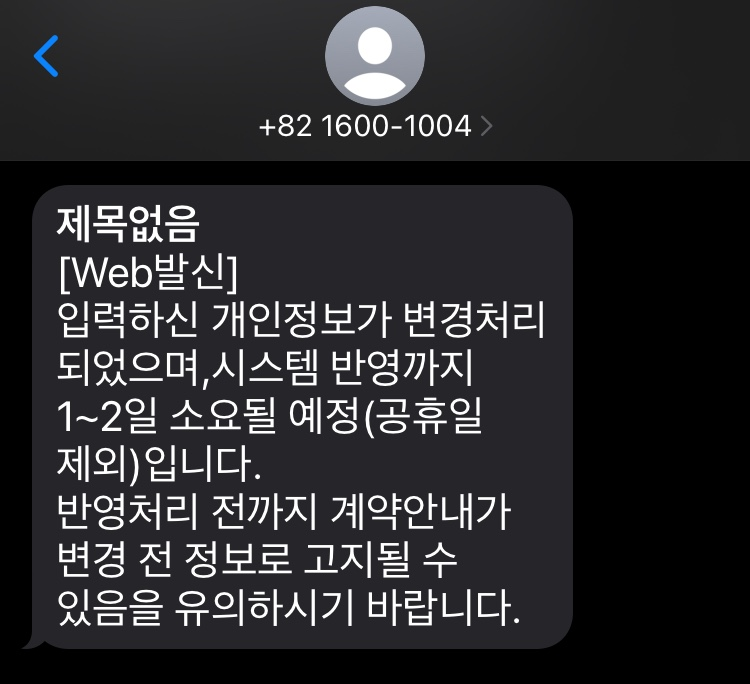 중요 사항 변경 될때마다 이런 문자 보내는거 같다ㅎㅎ