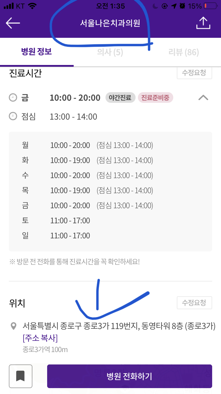 치과는 종로에 있는 "서울 나은 치과 의원"이 굿乃